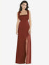 【STYLE: 8224】Flat Tie-Shoulder Empire Waist Maxi Dress with Front Slit【COLOR: Auburn Moon】