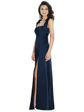 【STYLE: 8224】Flat Tie-Shoulder Empire Waist Maxi Dress with Front Slit【COLOR: Midnight Navy】