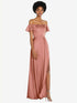 【STYLE: 8227】Straight-Neck Ruffled Off-the-Shoulder Satin Maxi Dress【COLOR: Desert Rose】