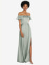 【STYLE: 8227】Straight-Neck Ruffled Off-the-Shoulder Satin Maxi Dress【COLOR: Willow Green】