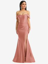 【STYLE: CS101】Off-the-Shoulder Corset Stretch Satin Mermaid Dress with Slight Train【COLOR: Desert Rose】