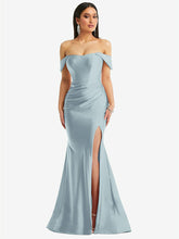 【STYLE: CS101】Off-the-Shoulder Corset Stretch Satin Mermaid Dress with Slight Train【COLOR: Mist】