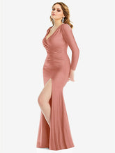 【STYLE: CS102】Long Sleeve Draped Wrap Stretch Satin Mermaid Dress with Slight Train【COLOR: Desert Rose】