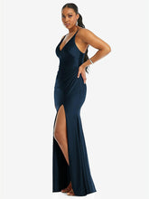 【STYLE: CS103】Deep V-Neck Stretch Satin Mermaid Dress with Slight Train【COLOR: Midnight Navy】