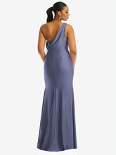 【STYLE: CS104】One-Shoulder Asymmetrical Cowl Back Stretch Satin Mermaid Dress【COLOR: French Blue】