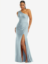 【STYLE: CS104】One-Shoulder Asymmetrical Cowl Back Stretch Satin Mermaid Dress【COLOR: Mist】