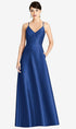 【STYLE: D750】V-Neck Full Skirt Satin Maxi Dress【COLOR: Classic Blue】