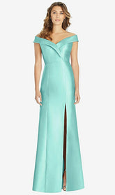 【STYLE: D760】Off-the-Shoulder Cuff Trumpet Gown with Front Slit【COLOR: Coastal】