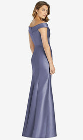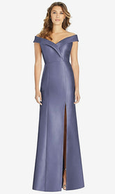 【STYLE: D760】Off-the-Shoulder Cuff Trumpet Gown with Front Slit【COLOR: French Blue】
