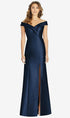 【STYLE: D760】Off-the-Shoulder Cuff Trumpet Gown with Front Slit【COLOR: Midnight Navy】