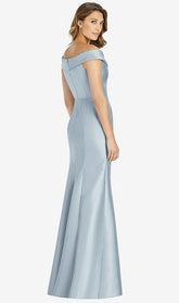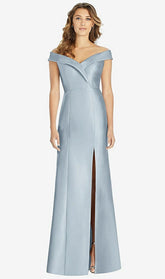 【STYLE: D760】Off-the-Shoulder Cuff Trumpet Gown with Front Slit【COLOR: Mist】