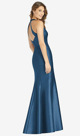 【STYLE: D761】V-Neck Halter Satin Trumpet Gown【COLOR: Dusk Blue】