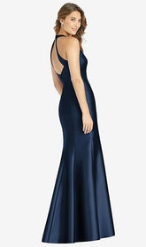 【STYLE: D761】V-Neck Halter Satin Trumpet Gown【COLOR: Midnight Navy】