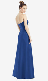 【STYLE: D774】Strapless Notch Satin Gown with Pockets【COLOR: Classic Blue】