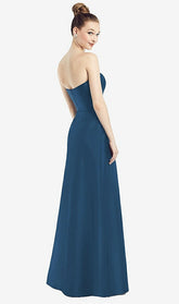 【STYLE: D774】Strapless Notch Satin Gown with Pockets【COLOR: Dusk Blue】