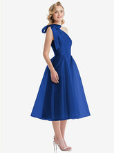 【STYLE: D835】Scarf-Tie One-Shoulder Organdy Midi Dress 【COLOR: Sapphire】
