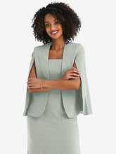 Perfect for weddings and other formal occasions, this open front cape is made of a soft crepe fabric. Featuring cloak sleeves that keep the shoulders warm, this cape style top is perfect over formal dresses.