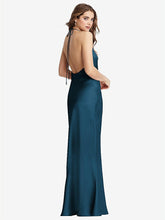 Pairing a maxi length skirt with a delicate cowl neck, this slip dress is simply stunning for any formal occasion. It shows off lush lux charmeuse fabric with a bias cut skirt that creates lovely movement. Delicate spaghetti straps are convertible, creating either a halter top or a crisscross back.