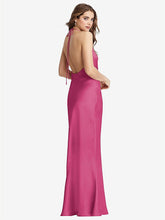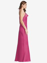 Pairing a maxi length skirt with a delicate cowl neck, this slip dress is simply stunning for any formal occasion. It shows off lush lux charmeuse fabric with a bias cut skirt that creates lovely movement. Delicate spaghetti straps are convertible, creating either a halter top or a crisscross back.