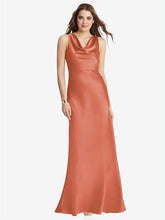 A natural waistline and soft cowl neck create just the right highlight for this cowl neck dress with a full-length maxi skirt. Delicately designed with flowing lux charmeuse fabric, tank-style straps and a covered back ensure coverage without sacrificing elegance.