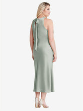 Creating a keyhole peek-a-boo effect, a sleek back tie adds a surprising style element to this lux charmeuse dress. Its semi-formal midi length is perfect for everything from a wedding to a spring garden party while a jewel neckline and flowing skirt create beautiful movement.