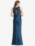 Everyone will notice when you turn your back to reveal the dramatic keyhole detail of this lux charmeuse maxi dress. Flowing fabric is highlighted with a jewel neckline and flowing skirt that lend a sophisticated touch. A simple tie behind the neck creates its peek-a-boo detail and adds a feminine touch.