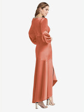 【STYLE: LB008】Puff Sleeve Asymmetrical Drop Waist High-Low Slip Dress - Teagan【COLOR: Terracotta Copper】