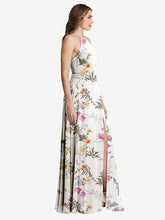 【STYLE: LB010】High Neck Chiffon Maxi Dress with Front Slit - Lela【COLOR: Butterfly Botanica Ivory】