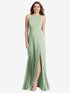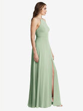 【STYLE: LB010】High Neck Chiffon Maxi Dress with Front Slit - Lela【COLOR: Celadon】