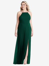 【STYLE: LB010】High Neck Chiffon Maxi Dress with Front Slit - Lela【COLOR: Hunter Green】