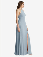 【STYLE: LB010】High Neck Chiffon Maxi Dress with Front Slit - Lela【COLOR: Mist】
