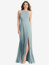 【STYLE: LB010】High Neck Chiffon Maxi Dress with Front Slit - Lela【COLOR: Morning Sky】