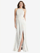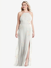 【STYLE: LB010】High Neck Chiffon Maxi Dress with Front Slit - Lela【COLOR: Spring Fling】