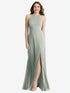 【STYLE: LB010】High Neck Chiffon Maxi Dress with Front Slit - Lela【COLOR: Willow Green】