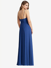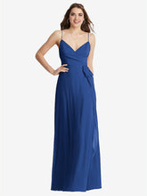 Pairing a classic formal silhouette with lovely, light lux chiffon fabric, this maxi wrap dress is sure to please for a everything from prom to a wedding to a sophisticated cocktail party. A sleek sash ties at the hip, emphasizing the flowing energy of a full circle skirt. A V-neck and delicate spaghetti straps pair with a low ballet back.