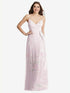 Pairing a classic formal silhouette with lovely, light lux chiffon fabric, this maxi wrap dress is sure to please for a everything from prom to a wedding to a sophisticated cocktail party. A sleek sash ties at the hip, emphasizing the flowing energy of a full circle skirt. A V-neck and delicate spaghetti straps pair with a low ballet back.