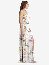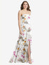 【STYLE: LB012】Square Neck Chiffon Maxi Dress with Front Slit - Elliott【COLOR: Butterfly Botanica Ivory】