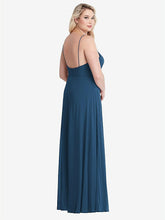 Delicate and flowing, this square neck maxi dress is a formal design that embraces elegance and movement. Sleek spaghetti straps and a low ballet back are emphasized with a beautiful full circle skirt with a high slit that adds modern appeal.