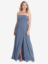 【STYLE: LB012】Square Neck Chiffon Maxi Dress with Front Slit - Elliott【COLOR: Larkspur Blue】