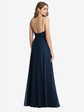 【STYLE: LB012】Square Neck Chiffon Maxi Dress with Front Slit - Elliott【COLOR: Midnight Navy】