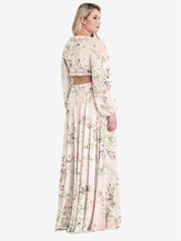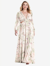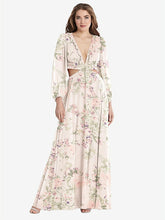 【STYLE: LB015】Bishop Sleeve Ruffled Chiffon Cutout Maxi Dress - Harlow 【COLOR: Blush Garden】