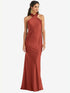 【STYLE: LB025】Draped Twist Halter Tie-Back Trumpet Gown【COLOR: Amber Sunset】