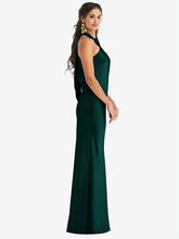 【STYLE: LB025】Draped Twist Halter Tie-Back Trumpet Gown【COLOR: Evergreen】