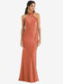 【STYLE: LB025】Draped Twist Halter Tie-Back Trumpet Gown【COLOR: Terracotta Copper】