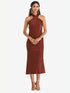 【STYLE: LB026】Draped Twist Halter Tie-Back Midi Dress - Paloma【COLOR: Auburn Moon】