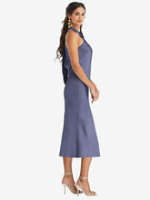 【STYLE: LB026】Draped Twist Halter Tie-Back Midi Dress - Paloma【COLOR: French Blue】