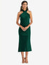 【STYLE: LB026】Draped Twist Halter Tie-Back Midi Dress - Paloma【COLOR: Hunter Green】