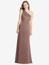 【STYLE: LB028】Shirred One-Shoulder Satin Trumpet Dress - Maddie【COLOR: Sienna】