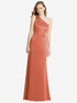 【STYLE: LB028】Shirred One-Shoulder Satin Trumpet Dress - Maddie【COLOR: Terracotta Copper】