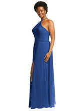 Embrace glamour with the attention-grabbing diamond halter neckline on this lux chiffon gown. A formal design with a natural waist, this maxi dress creates a flowing silhouette with a modified circle skirt with a slit up the thigh and a natural waist that defines your shape perfectly.